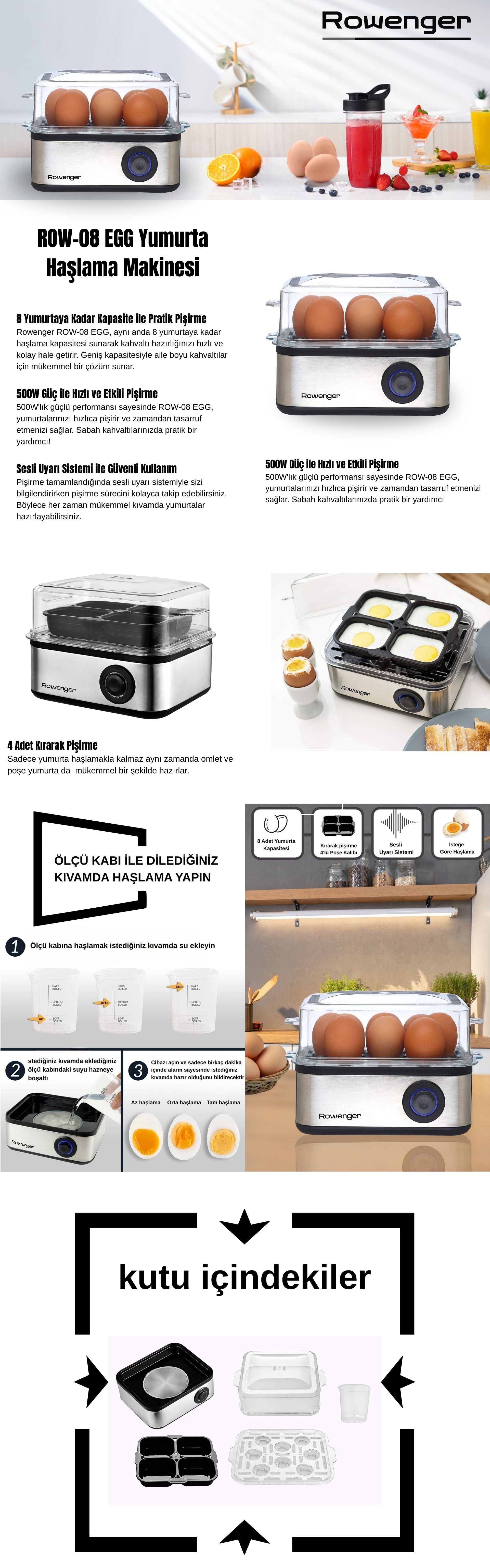 - Sesli uyarı özelliği sayesinde yumurtalarınızın pişirme süresini takip etmek kolaylaşır.
